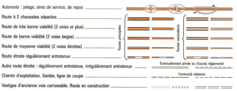 Observe les légendes : comment sont dessinées les différentes routes sur la carte I.G.N. puis .. retour