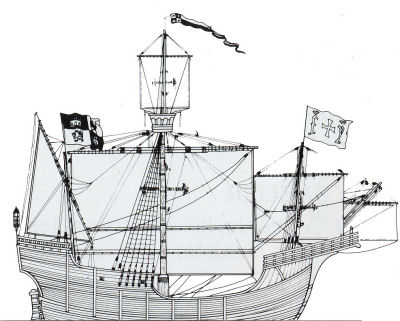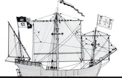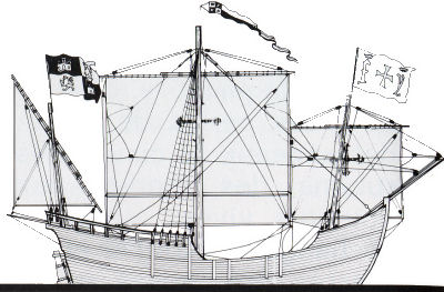 vaisseau amiral (la Santa Maria) et les deux caravelles (la Pinta
