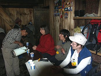 dans une salle commune ou des chambrettes, quelques trekkers pour la nuit.