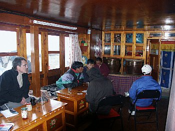 dans une salle commune ou des chambrettes, quelques trekkers pour la nuit.